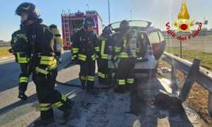 Auto va a fuoco a Carisio: sul posto i vigili del fuoco