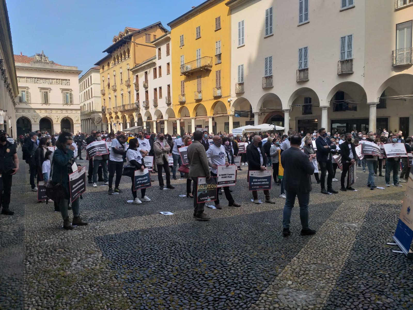 NOVARA - 01-04-2021 - Intensa partecipazione degli esercenti di VCO e Novarese che questa mattina si sono ritrovati in piazza Duomo (piazza della Repubblica) a Novara, per la manifestazione organizzata da Confcommercio Alto Piemonte contro le chiusure dei pubblici esercizi.