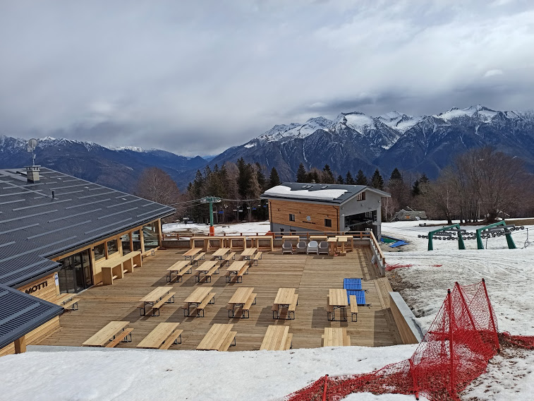 Un cartello di benvenuto ci dice che siamo a quota 813. Mi rendo conto con stupore che da questo stupendo punto panoramico non ero mai passato. Torniamo sui nostri passi per qualche decina di metri e, appena riattraversato il ruscello, risaliamo subito alla nostra destra su un ripido sentiero ben pulito che, in realtà, è una pista di discesa per i virtuosi delle mountain bike. Incrociamo la mulattiera più frequentata, che sale da Prata, poco prima del Lusentino e, dopo due ore scarse di cammino dal campo base, siamo a La Roccia da Romano, l’unica vera roccia. Ci gustiamo uno squisito caffè, rigorosamente “da asporto”, mentre osserviamo dall’alto, finalmente, i lavori di pavimentazione del piazzale, vanamente attesi per decenni. Passando dall’Oratorio di San Bernardo, 1174, lungo la strada arriviamo ad incrociare la pista da sci prima dell’Alpe Foppiano, 1249, dove osserviamo il bellissimo restyling del vecchio “Self Service”.