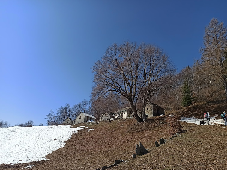 Torniamo verso nord est, scendiamo ad attraversare il riale della Val Stramba e risaliamo fino al bivio per Maianco Superiore, dove l’amico di Villadossola scende verso Gabbio e poi casa sua. Passando per Maianco Inferiore, 690, raggiungiamo Tappia, 624, dopo un’ora e tre quarti dalla pausa pranzo. Un’altra ora per chiudere l’ennesimo anello alla Cappella Dell’Oro e per raggiungere Anzuno e Crosiggia con le gambe quasi in riserva.