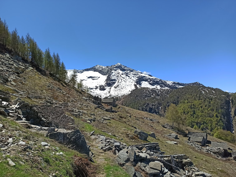 PIEMONTE- 30-05-2021-- Il caldo non arriva e le temperature, ideali per camminare, ci consentono di alzare un po' l'asticella ed iniziare gite di buon dislivello in previsione delle “cose serie” programmate per l’estate. Per ora ci limita ancora la neve presente sotto i duemila sui versanti nord, ma va bene così. Abbiamo rivisto, dopo anni, un bellissimo alpeggio, purtroppo quasi totalmente abbandonato e con sentieri un po' trascurati.