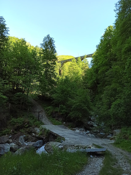 Che l'homo idroelettricus non le abbia ancora prese di mira? Oltre il ponte la sterrata sale ripida e poi più dolcemente. Dopo pochi minuti, in corrispondenza del traliccio di una linea elettrica, un sentierino sale sulla destra. Lo seguiamo, attraversiamo i binari della Vigezzina ed entriamo nel bosco. Dopo mezz'ora dal parcheggio lasciamo alla nostra destra le rovine dell'Alpe Pianezza. Il sentiero è evidente, ma non segnato, fino all'Alpe L'Erta, 1038, (tre quarti d'ora). Qui c'è l'unica fontana che troveremo oggi. Breve pausa e risaliamo il Bosco dell'Erta, inizialmente molto ripido. Il sentiero è segnato di fresco e molto bene, cioè da qualcuno che sa che i segni devono essere visti anche da chi scende. Arriviamo a Roi in un'ora e un quarto. Il grande alpeggio, a quota 1532 alle baite più alte, è ben visibile dal fondovalle e attira l'attenzione sempre degli escursionisti.