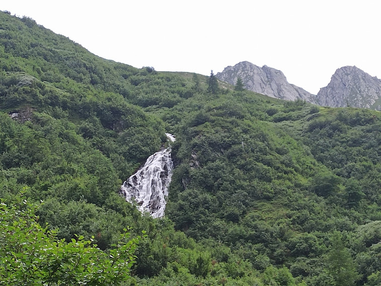 Da Gondo saliamo nella Valle di Zwischbergen, a Bord, poco oltre il bacino di Sera. Parcheggiamo nel solito grande spiazzo sulla riva del torrente Grosses Wasser, a quota 1300 circa. Pensando agli oltre quaranta gradi del nostro Sud, ci gustiamo i dieci gradi di questa valle ancora in ombra. Ci dirigiamo a meridione in dolcissima salita sulla strada asfaltata fino al fabbricato di una centrale idroelettrica. Sullo sterrato arriviamo a Tannuwald, 1420, e attraversiamo il torrente, passando sulla destra orografica con la sua bella mulattiera. Siamo sui sentieri TPA (Tour del Pizzo Andolla). La strada sterrata resta sulla sinistra orografica. Prima del bacino idroelettrico di Fah, 1761, riattraversiamo il torrente e, lungo la strada, oltrepassiamo il lago.