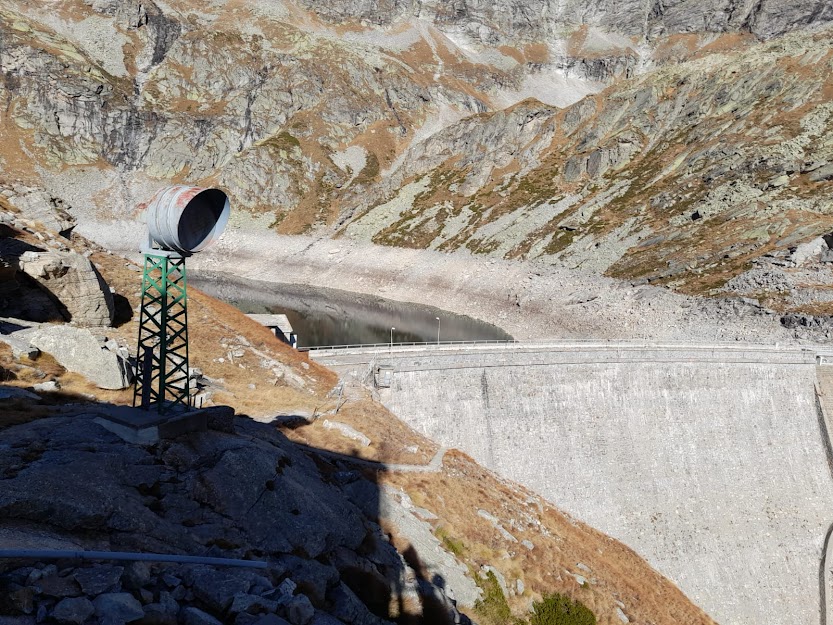 Prevale fortunatamente il principio di non brindare fino a che c’è salita. Si prosegue quasi in piano ad attraversare il vallone del Riale Sangoria e si riprende a salire, ormai fuori dal bosco, fino all’Alpe Cingino, 2044, e poi al lago, 2250 (un’ora abbondante). L’incredibile spettacolo degli stambecchi sul ciclopico muraglione della diga oggi ci viene negato. Avranno altro da fare che le acrobazie per leccare il salnitro.