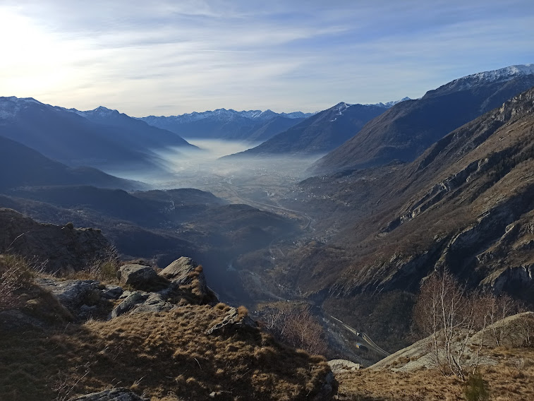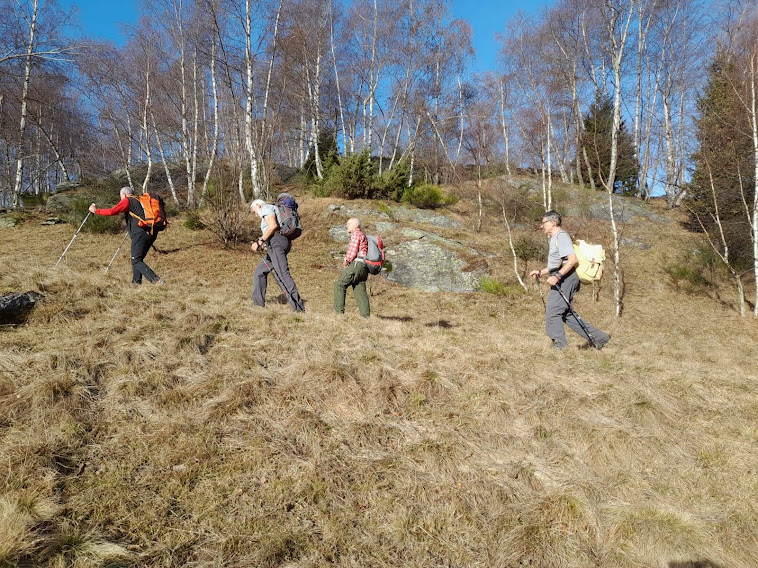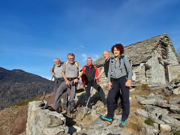Abbassa l’età media dei cinque anziani la nostra fedele badante, unica rappresentante odierna dell’etnia verbanese. Gli altri lacustri prediligono la neve, anche quando non c’è. Il sentiero, a tratti molto ripido, scalda subito i muscoli intorpiditi dagli ozi natalizi e, in meno di mezz’ora, ci porta a Veglio, 540.