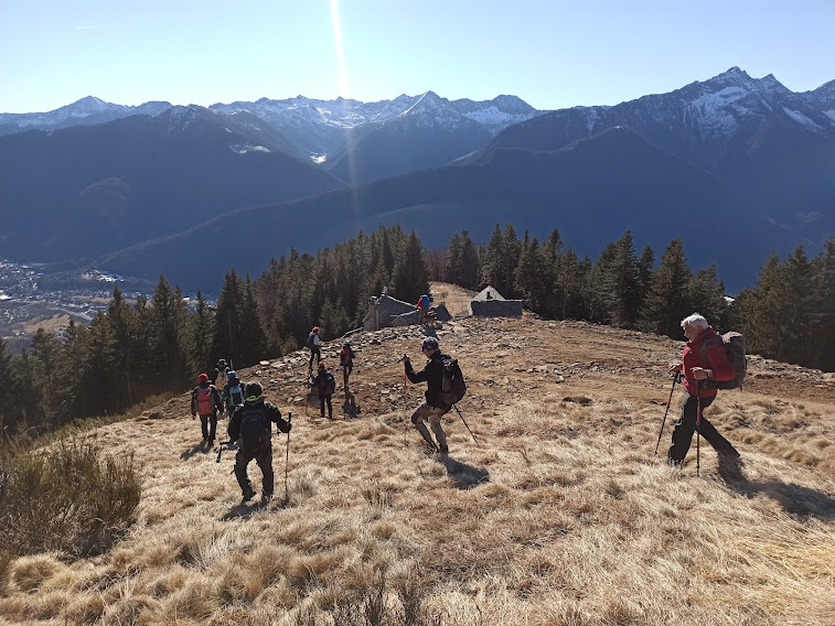Ancora una splendida giornata! Il che è veramente preoccupante: l’ultimo fiocco di neve è sceso dal cielo un mese e mezzo fa. Poco freddo, niente neve, tanta siccità! Oggi siamo in doppia cifra. Cinque anziani godono della compagnia di due forti signore, di un esordiente nel gruppo, di due medici prestigiosi e di un ex alpinista.