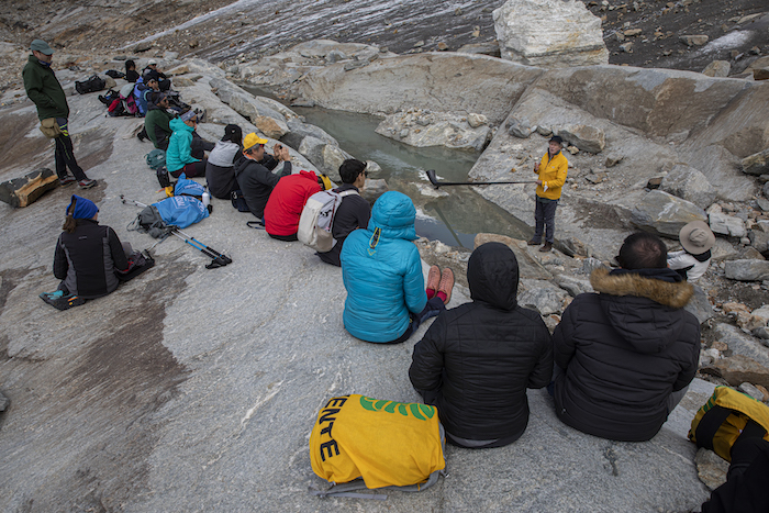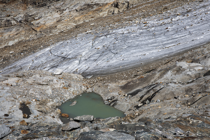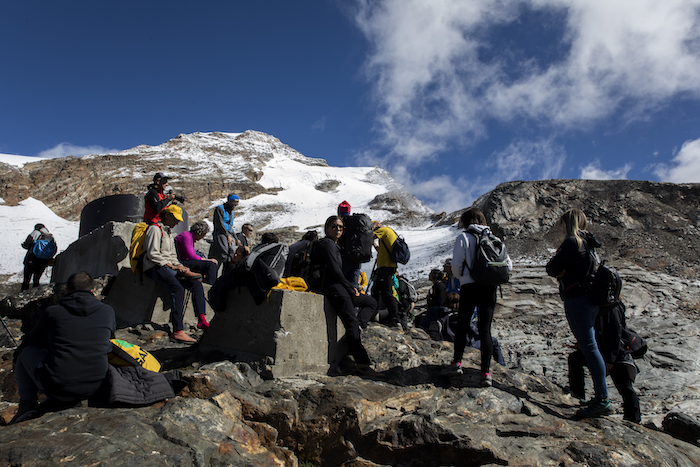“Nella seconda tappa di Carovana dei Ghiacciai abbiamo raggiunto il Ghiacciaio di Indren e, passo dopo passo, abbiamo potuto verificare l’entità e la rapidità dei processi di deglaciazione –commenta Marco Giardino, vicepresidente del Comitato Glaciologico Italiano e Università di Torino – Attraverso il confronto con immagini storiche, abbiamo constatato la riduzione delle dimensioni del ghiacciaio, il cui settore laterale destro, particolarmente depresso, pare prossimo a frammentarsi; la superficie del ghiacciaio è apparsa solcata da innumerevoli ruscelli che distribuiscono l’acqua di fusione verso pozze e laghetti; la copertura detritica è risultata notevolmente aumentata rispetto agli ultimi anni, e sono stati individuati numerosi blocchi precipitati sul ghiacciaio dalle pareti del circo glaciale, anch’esse destabilizzate per processi gravitativi e di dilavamento legati alla scomparsa della copertura glaciale e alla degradazione del permafrost”.