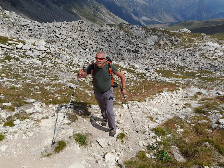 Attraversiamo il torrente e saliamo ad incrociare, in prossimità della Forcola, la bellissima mulattiera che sale da Goglio, La Via dell’Arbola. Un tratto ripido e poi la pista pianeggiante ci portano a Devero. Attraversiamo la piana fino a Pedemonte, 1640, ed iniziamo a salire. Siamo sulla GTA e gli anziani ingranano subito la quarta perché il ripido è il loro pane. Quasi di conserva con noi salgono due signore svizzere, una delle quali fa più fatica ed è molto su di età, secondo l’antropologo del gruppo. Scopriremo più avanti che è mia coetanea e che arriverà in vetta prima di noi. L’altra, sempre secondo l’antropologo, ha un’età che varia dai quindici ai cinquantasette anni. Daremo all’amico un altro incarico.