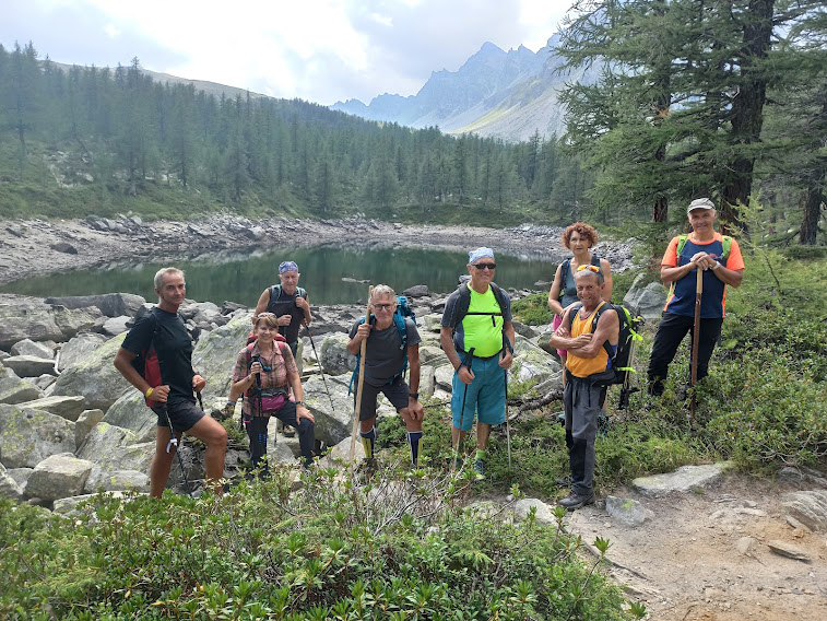 Il nostro presidente, coadiuvato da due badanti e dal medico di turno, accompagna quattro anziani ed un quasi giovane runner, al rientro da acciacchi vari, alla riscoperta del Grande Ovest di Devero. Splende il sole e c’è il solito caldo anomalo. Qualche nuvola non è sufficiente per farci riporre l’ombrello nello zaino.