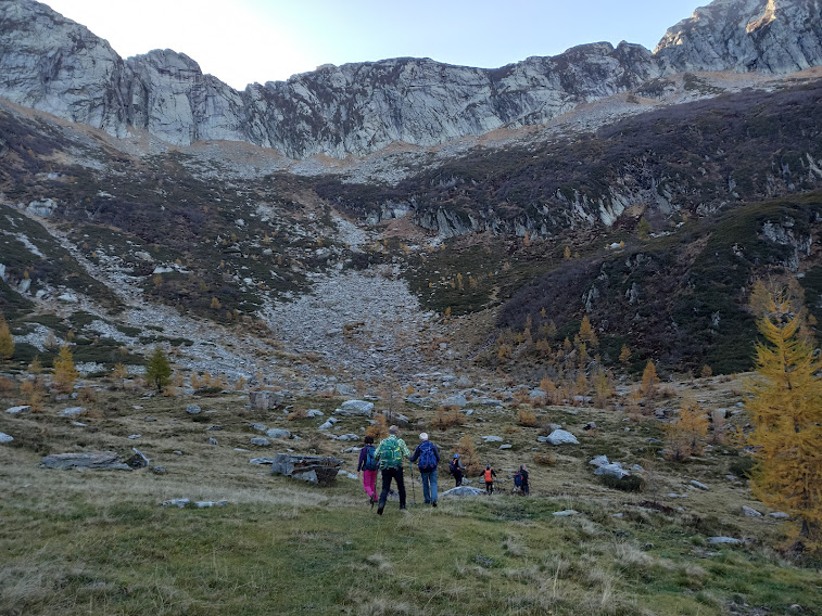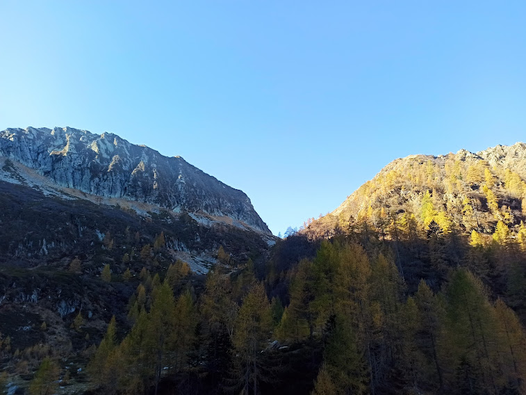 MALESCO- 04-12-2022-- Torniamo in Val Loana, incuriositi dalla Bocchetta di Vald, a molti ignota e che vedevamo di fronte a noi dalla Bocchetta di Cavalla due settimane fa. Il terreno scivoloso per l’umidità, perché il sole in questo periodo qui scarseggia, mette a dura prova la nostra attenzione. Mette invece a dura prova le nostre gambe la ripidissima salita dall’Alpe Bondolo alla Bocchetta di Cavalla. La Loana è la valle ossolana più prosciugata in assoluto dall’homo idroelettricus, dopo la Val Moriana, che lo è al cento per cento.