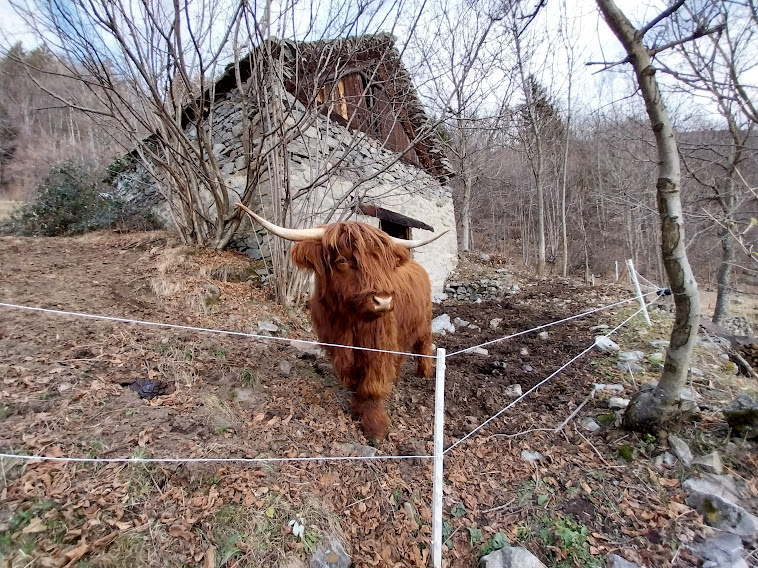 I cartelli ci dicono che siamo sul “Sentiero dei Cervi”. Passiamo da Balmella, sul sentiero sempre evidente, e sostiamo qualche minuto alla Cappella “Al Pastaiun”. Arriviamo a Baratta, 1240, dopo un’ora e un quarto. Qui ci raccordiamo con il sentiero F06 che da Dreuza sale a Solcio. Entriamo nel bosco, trovando solo tracce di neve. Ne troviamo un po’ da quota 1500, ma parliamo di centimetri e non di metri, come qualche anno fa. Passiamo da Argnai e Quartina Sotto. Attraversiamo la strada e proseguiamo per Quartina e Solcio. L’ultimo breve strappo, evitando la strada finalmente un po’ innevata, ci porta al Rifugio Crosta, 1750 (un’ora e mezza).