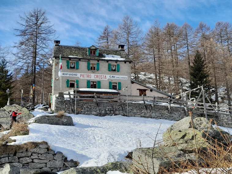 VARZO- 05-02-2023-- Il tempo incerto ci induce a salire al Rifugio Crosta dell’Alpe Solcio, meta assolutamente sicura e sempre gradita a tutti, dove ci attende la squisita ospitalità di Marina ed Enrico. Siamo saliti o discesi qui da ogni punto cardinale, ma non eravamo mai partiti da Coggia, frazione alta di Varzo. E poi non vedevamo i nostri amici da un po’.