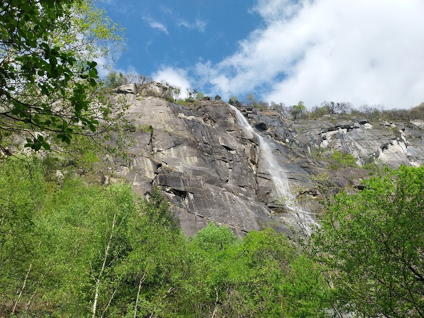 D’ora in avanti leggera discesa con qualche breve risalita. Rapidamente arriviamo a Fiume, 1175, e ci concediamo un’altra pausa. Più avanti un pezzo di sentiero in salita è al coperto grazie ad un colossale tetto di granito sul quale, in un tratto, scorre l’acqua formando una cascatella che si presta a foto suggestive. Ad un bivio lasciamo alla nostra sinistra il sentiero per Altiaccio e, dopo tre quarti d’ora, arriviamo, per l’ennesima pausa ricreativa e culturale, a La Pioda, 1001.