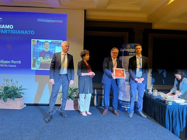 I Premi Artifex, assegnati a Massimiliano Ferré, presidente di We Do Fab Lab di Omegna, che a sua volta consegna agli ospiti dell’assemblea una moka realizzata con compensato e tagliata con il laser. Giorgio Angeleri , sindaco di Orta, che ringrazia e rimarca la “bella sintonia” che esiste con Confartigianato, Lella Bassignana, consigliera di Parità della Provincia di Vercelli, che rimarca la vicinanza e la collaborazione che esiste con Confartigianato.