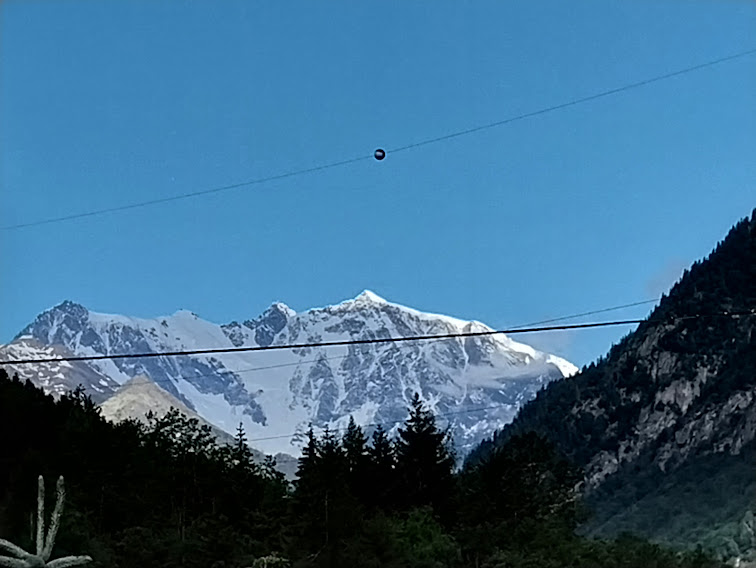 Splende il sole e ci sorride la grande Parete Est. Le previsioni, pessimistiche come sempre più spesso accade, fanno appesantire gli zaini con l’ombrello. Scendiamo verso l’Anza e, prima di attraversarla sul monumentale ponte romano, osserviamo con ammirazione un giardino popolato da sculture in legno di animali.
