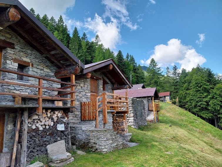Ci arriviamo, con tutta calma, dopo un’ora e tre quarti. Fra le bellissime baite c’è anche quella di Giancarlo Tabachi, classe 1934, un grande della corsa in montagna che, a ottantasette anni, saliva qui da Ceppo Morelli in poco più di un’ora. Splende ancora il sole e ci concediamo una lunga pausa in contemplazione dei monti d’Anzasca della sinistra orografica, di fronte a noi.