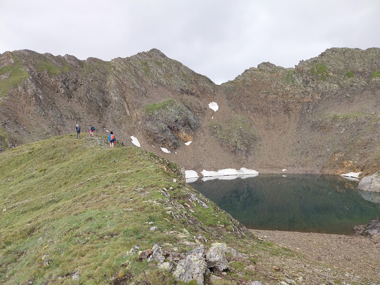 A quota 2450 circa viriamo ad ovest e ci portiamo, per la meritata pausa colazione, ai piedi di Torre Mutt e Corno Mutt. Più in alto segue un lungo traverso. Alla nostra sinistra, poco più in basso, il Lago di Brunni Minore, 2555. L’ultimo strappo in salita ci porta al Lago di Brunni, 2661, dopo un’ora e tre quarti dal Rifugio Maria Luisa.