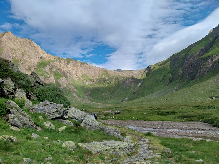 Siamo su La Via del Gries, il principe dei sentieri, GOO. Risaliamo fino a quota 2260 e sostiamo brevemente nell’unico tratto pianeggiante. Dopo un’ora siamo al Passo Gries, 2479, cruciale via d’ingresso alla “Bella Italia” nella nostra storia. Passiamo accanto alla targa che ricorda il viaggio di Richard Wagner in Italia, iniziato qui il 18 luglio 1852. Su dolci saliscendi, diretti a nord est, raggiungiamo il Passo Corno, 2485, e, in corrispondenza del primo laghetto e di una palina in legno, saliamo a sinistra e ci portiamo su un piccolo altipiano con vecchie fortificazioni. Siamo a Calcestro.