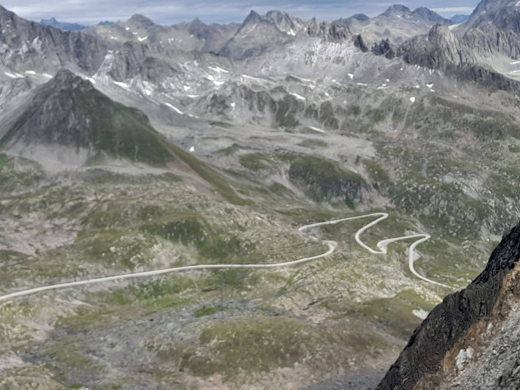Sempre in direzione nord risaliamo con attenzione e fatica, almeno io, una dorsale erbosa molto ripida e poi, su pendii più “umani”, raggiungiamo la cresta che separa la Val Corno dalla testata occidentale della Val Bedretto, dove nasce il fiume Ticino e dove si snoda la strada del Nufenenpass. Percorriamo verso oriente la cresta, facile ma esposta, un traverso di sassi e terra e in breve raggiungiamo la croce di vetta, 2866 (un’ora e mezza dal Passo Gries).