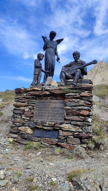 Poco prima della stazione di partenza della funivia ENEL tengo la sinistra lungo la strada sterrata e scendo ad attraversare il torrente sul ponte. Giro a destra e rimedio ad un piccolo errore di percorso tornando sulla sinistra orografica. Breve pausa ed inizia la salita ripida lungo il vecchio sentiero verso il Vallone del Sabbione. E’ evidente, a tratti un po’ esposto. Lo consiglierei soltanto in salita. Qui non c’è vento e il sole picchia, proprio dove l’ascesa è più ripida. A quota 2100 c’è la lapide di un giovane, Gilberto.