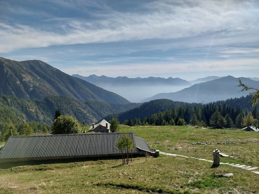 Non neghiamo agli amici il nostro supporto con bottiglie italiane che spuntano come funghi dai nostri zaini. Scendiamo a San Bernardo passando dall’Alpe Arza, dal Rifugio Il Dosso e dal sentiero che taglia i tornanti della strada. Da San Bernardo ripercorriamo il sentiero di salita fino all’Alpe Gomba e all’Alpe Ronchetti.