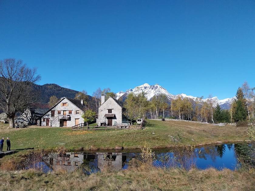Le betulle si stanno riprendendo quello che era stato un grande pascolo erboso. Attraversiamo lo splendido altopiano, adesso in dolcissima salita, fino al primo nucleo di baite. Qui teniamo la sinistra (nord) ed andiamo sulle rive del laghetto che, insieme alle case sulle sue rive e ad un acero monumentale, costituisce un autentico angolo di paradiso. Siamo su un balcone panoramico indescrivibile verso il gruppo del Cistella e le montagne di Antigorio e tanto altro.