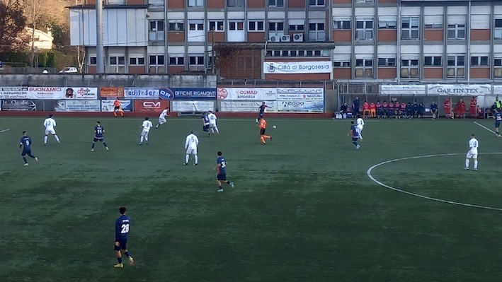 Borgosesia (3-5-2): Uva 6; Gilli 5, Derbali 5,5, Rekkab 5,5; Monteleone 6, Tunesi 5,5, Duse 6, Bertoni 5,5, Peritore 6 (36’ st Giacona ng); Manara 7, Tobia 5,5 (36’ st Iannacone).