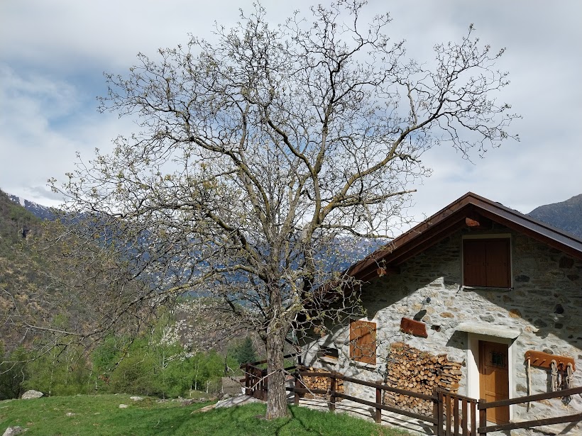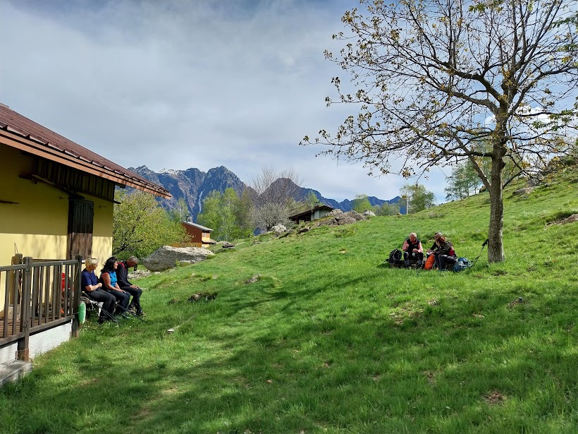Passiamo dall’Alpe I Casali, 789, dove c’è la bella baita di un amico, e raggiungiamo Piazza Grande, 921, in corrispondenza di una cappella con piccolo campanile e di un’indicazione altimetrica “generosa” (quasi tre quarti d’ora). Nel grande alpeggio, direi un paesino sparso su una vasta zona, ci rifocilliamo al sole e al riparo dal vento. Alle baite più alte, sulla sinistra, riprendiamo il sentiero A33 che, passando dall’indicazione dell’Alpe Crota, ci porta all’altro vasto alpeggio di La Tagliata, 1221, in meno di tre quarti d’ora.
