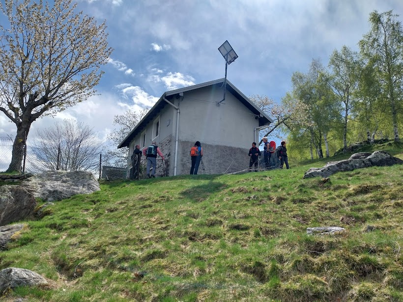 Ci troviamo ad Anzola, 210, in una giornata di sole, nuvole e fresco vento da nord. L’orario di tutto comodo mi consente anche di adempiere ad un semplice dovere di nonno. Nel piccolo ed ospitale Barlafuse beviamo un buon caffè e programmiamo già la birra pomeridiana. Un medico e tre inossidabili badanti si occupano di tre più o meno anziani. Attraversiamo il paese ed imbocchiamo la bellissima mulattiera, oggi non scivolosa grazie al vento, che ci porta alla chiesa della Madonna del Carmine.
