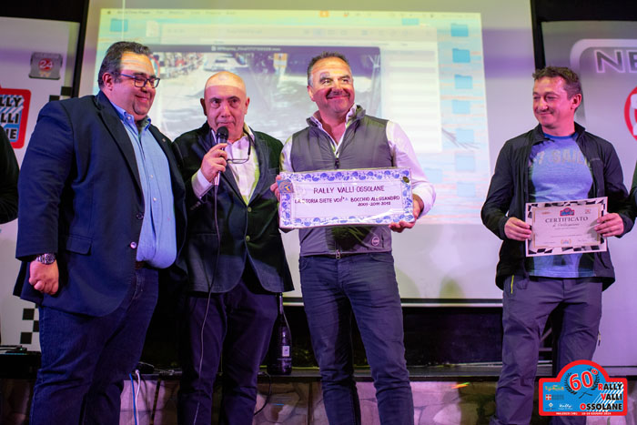 Sul palco del Trocadero, in una serata di sport, ricordi e amicizia, il bell'incontro di Uzzeni con lo sfidante che proprio quest'anno potrebbe superarlo portando in avanti il primato degli 8 Valli ossolane vinti: Davide Caffoni, intervenuto assieme al navigatore Mauro Grossi. Ma lo sport è lealtà e amicizia, e Uzzeni s'è detto contento dell'eventualità.