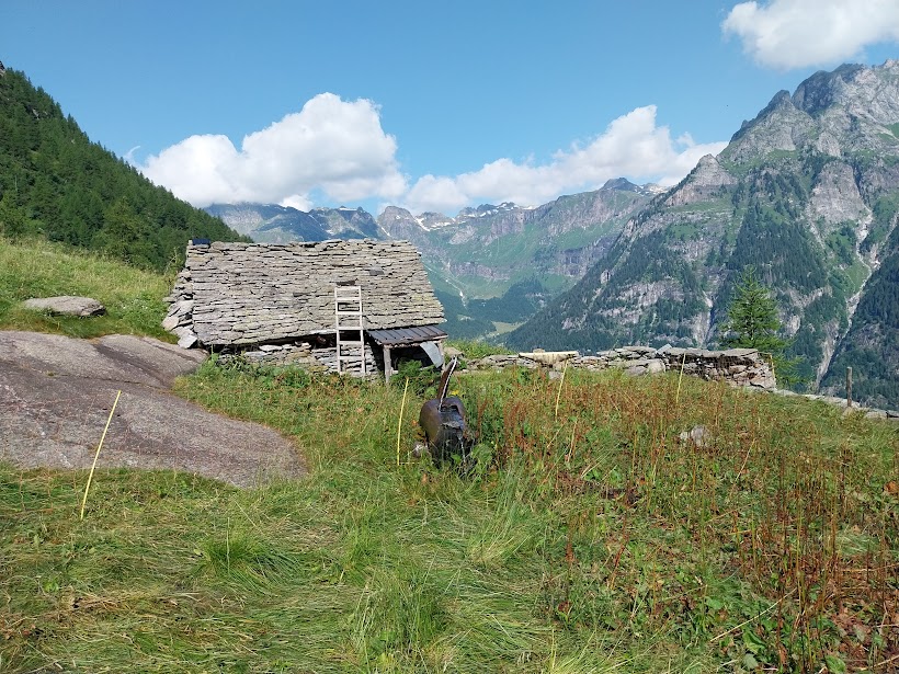 E’ la ormai consueta giornata di questo luglio, caldissima a valle, con sole, nuvole e la solita minaccia dei siti meteo di temporali nel pomeriggio. Il Presidente, supportato da tre badanti, accompagna cinque anziani dipendenti INPS. Dalla SS 659 sulla destra sale una strada sterrata a servizio della cava del Cramec che risaliamo per risparmiarci un centinaio di metri di dislivello, posteggiando in modo da non disturbare il transito dei mezzi di servizio. Siamo a quota 1000 circa.