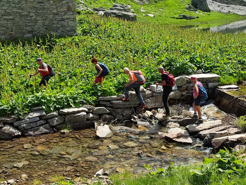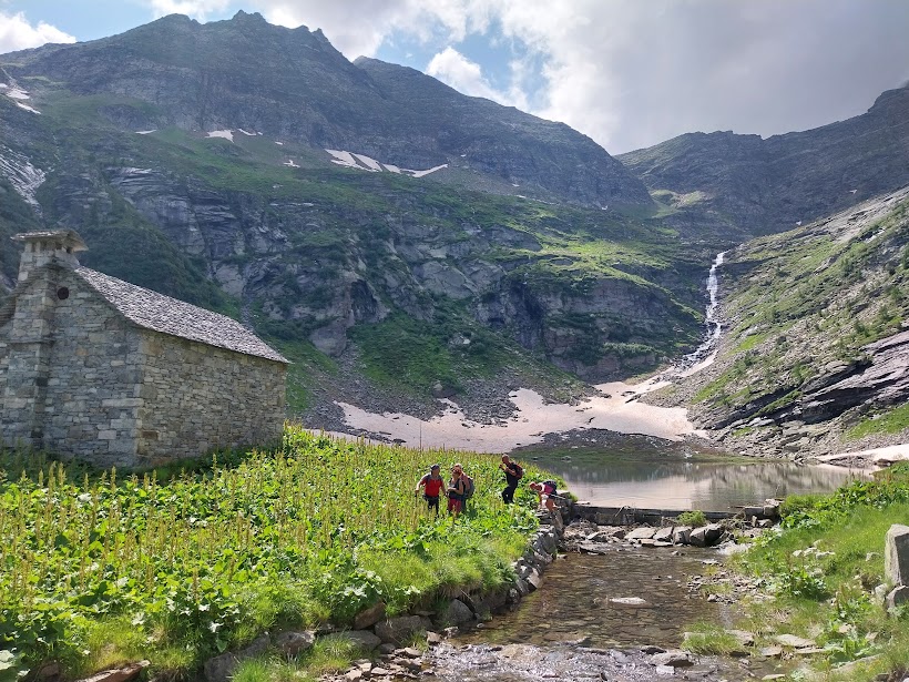 FORMAZZA-1808-2024-- La determinazione del nostro tecnologo e la sicura guida del Presidente ci indirizzano verso il Lago di Cramec. Siamo in una valle laterale sulla sinistra orografica del Toce, all’imbocco della Val Formazza. Ero passato di qui nel 2003, accompagnato da un alpinista allora non acciaccato, ma il passo era diverso. Eravamo saliti al Passo della Stella, scollinando in Ticino e rientrando in patria dal Passo di Bosco o Guriner Furggu, passando poi dall’Alpe Foglia. Non so in che condizioni siano adesso i sentieri sopra il Lago Cramec. Gita bellissima per conoscitori del territorio.