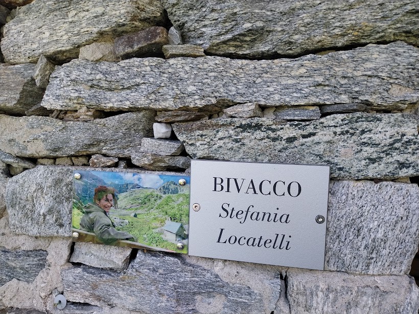 La direzione diventa poi sud est e si raggiunge uno splendido pianoro verdeggiante che, in dolce salita, conduce al bellissimo Lago del Cramec (poco più di un’ora), 1981. Ci sono ancora nevai sulle sue sponde. Visitiamo il bivacco, in perfetto ordine, dedicato a quella bella persona che era Stefania Locatelli. Pranziamo poi con tutta calma sulle rive di questo ennesimo splendido laghetto delle nostre valli.