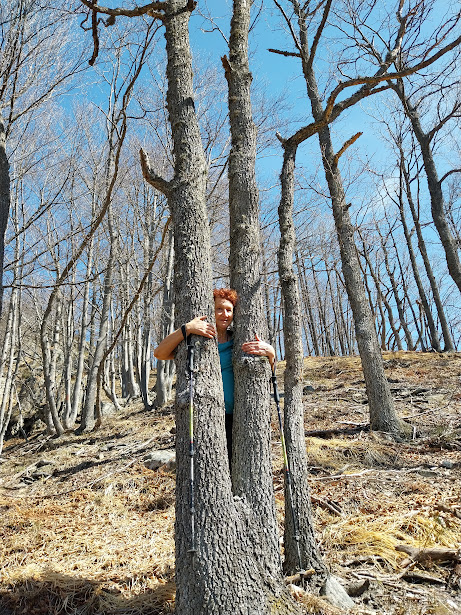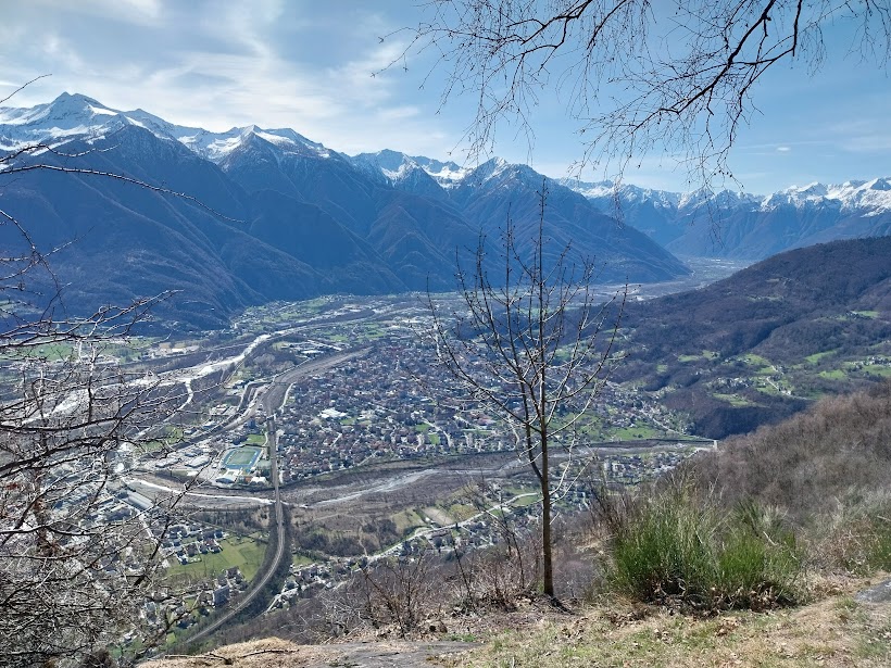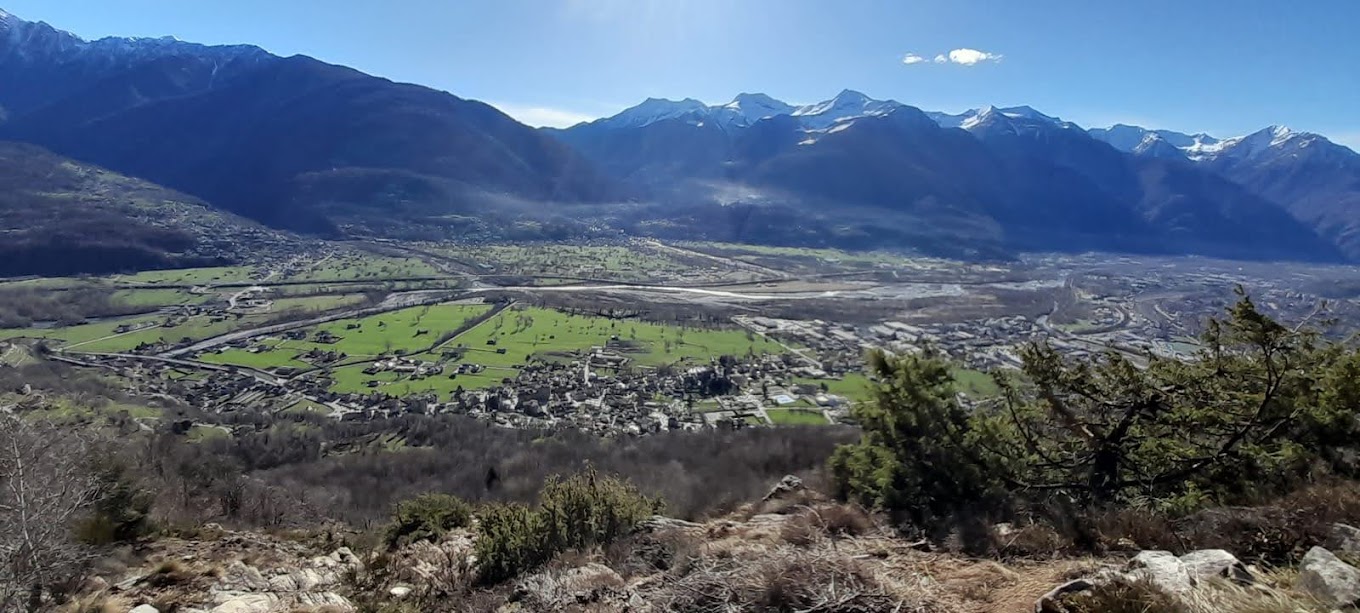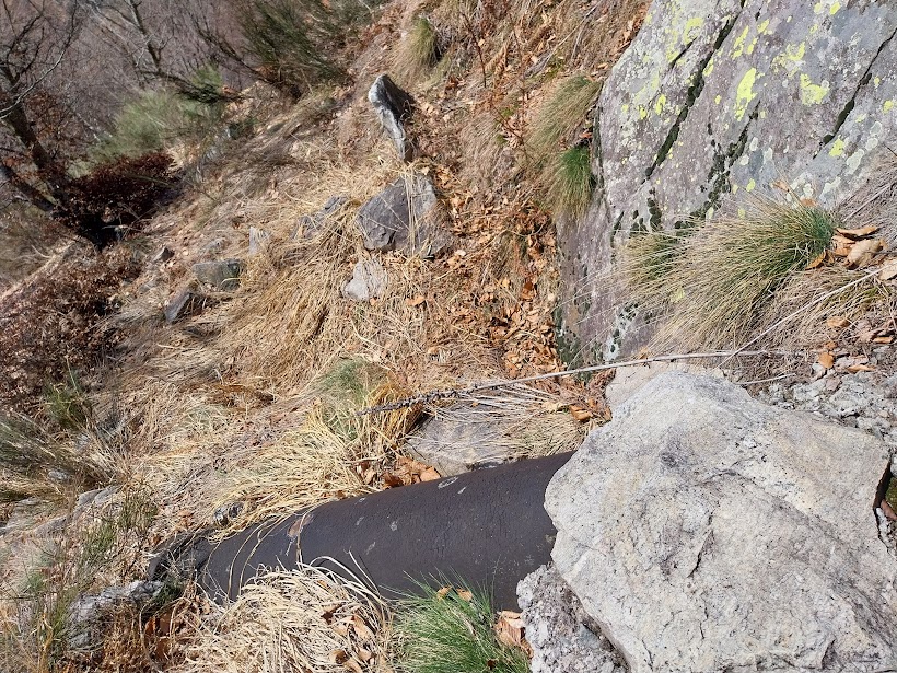 Non solo questa, ma tutte le strade montane “sbarrate”, ovviamente. Parcheggiamo e risaliamo sull’asfalto per pochi minuti fino ad incontrare sulla sinistra, al disotto della strada, il sentiero per l’Alpe Termine. Breve pausa all’Alpe Curtavello, 877, immersa nel bosco, dove si trovano baite in ottimo stato insieme ad altre  diroccate. Dopo un’ora di cammino siamo all’Alpe Termine, 1065, splendido balcone panoramico su Domodossola e sulla piana dell’Ossola. Durante la pausa colazione riceviamo la telefonata da Palermo di un anziano ex alpinista che ormai preferisce le crociere alle nostre montagne.