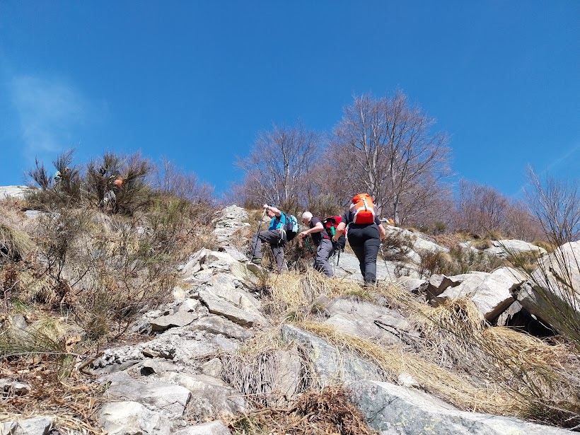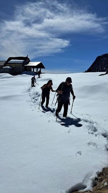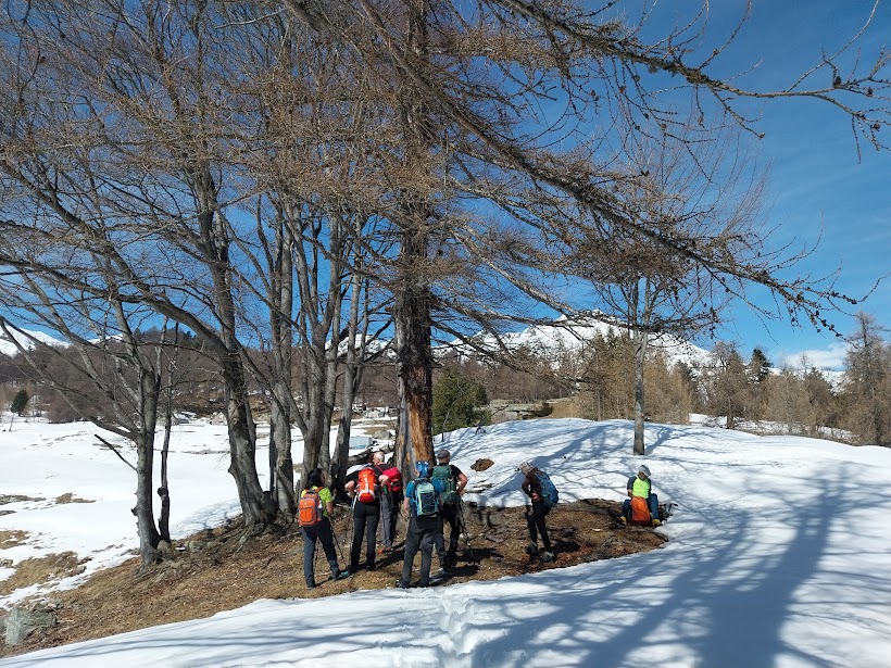 CREVOLADOSSOLA- 06-04-2025-- Torniamo ai giorni nostri. Le stesse gite di pochi o meglio tanti anni fa sembrano più lunghe e impegnative. In questa escursione, abbastanza avventurosa e faticosa, essendo la prima “seria” del 2025, si percorrono sentieri che in estate, con la vegetazione rigogliosa, sarebbero quasi impraticabili. Già il panorama della piana ossolana dall’Alpe Termine varrebbe la discreta fatica, abbinata oggi al prima caldo, ma più si sale più lo spettacolo migliora, fino a culminare nel meraviglioso pianoro, oggi innevato, dell’Alpe Fuori.