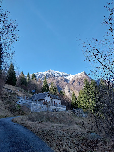 La giornata è splendida. Il referendum fra neve e erba non è neppure iniziato, non c’è storia, la neve ha poco successo. E’ così che quattro anziani, assistiti da un medico e quattro badanti, si trovano per un caffè ai trecento metri di Preglia anziché ai duemila del Passo del Sempione, per poter restare sotto la quota della neve. Ma in questo periodo non è facile.  In auto saliamo alla frazione Canei e proseguiamo lungo la strada per l’Alpe Andromia, fino alla sbarra, a quota seicento circa, che impedisce ai contribuenti di serie B di fare uso di una strada costruita anche con il loro denaro. E non mi si parli di “sicurezza” visto che in alcune occasioni, forse per “fare cassa”, la strada viene aperta a tutti.